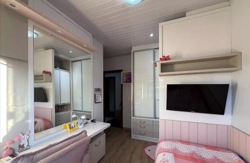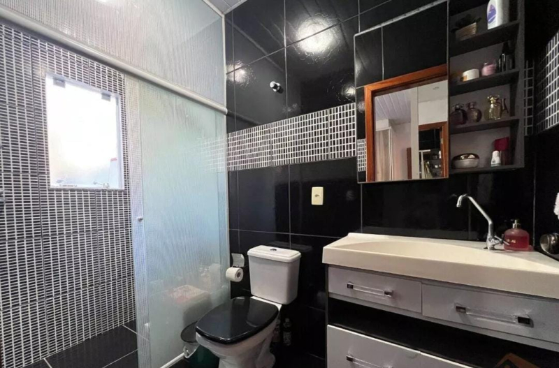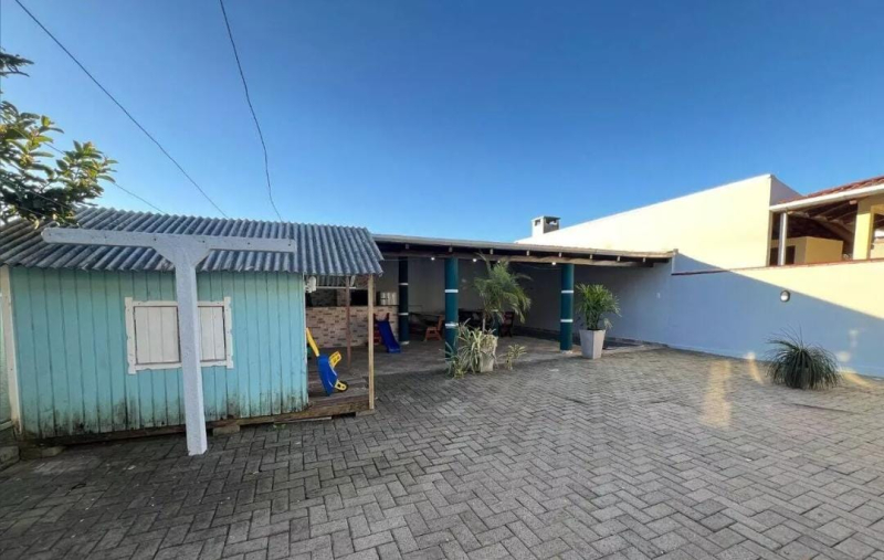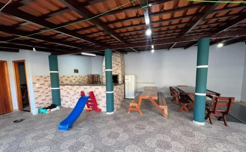 Cozinha integrada com sala de jantar, sala de estar, 01 suíte + 02 dormitórios, banheiro, área de festa com churrasqueira, lavabo, lavação, garagem.