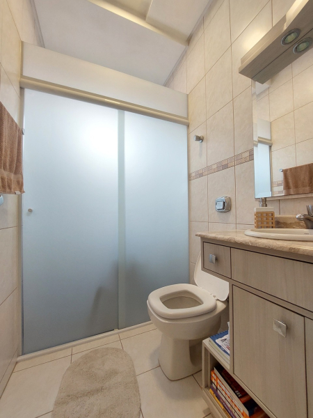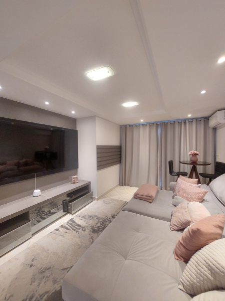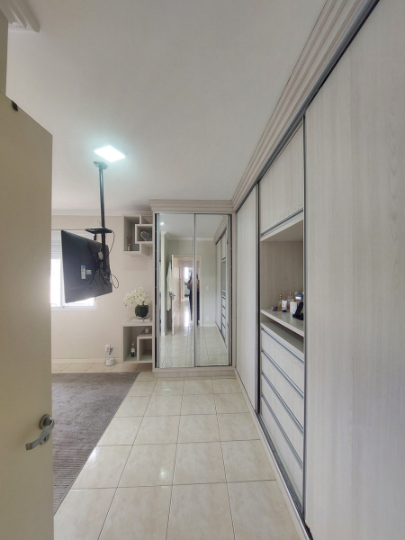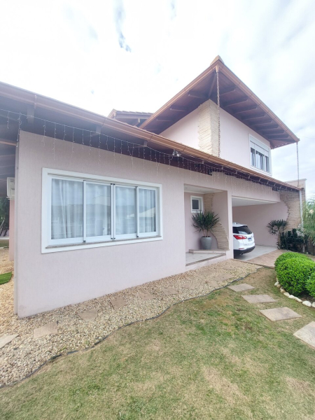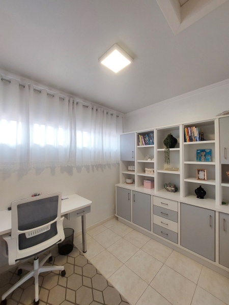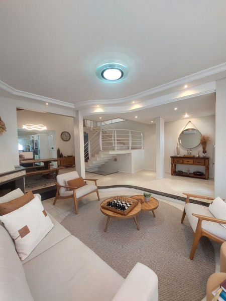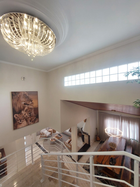 Piso inferior: hall de entrada sofisticado, sala de estar com lareira integrado com sala de jantar e cozinha, sala de cinema, lavanderia, despensa, escritório, área de festas com cozinha e amplo espaço, banheiro, área externa com piscina cercada com vidro removível, porão, garagem para 02 veículos.