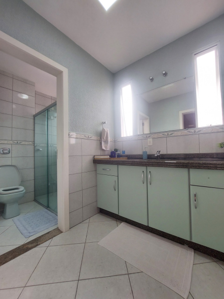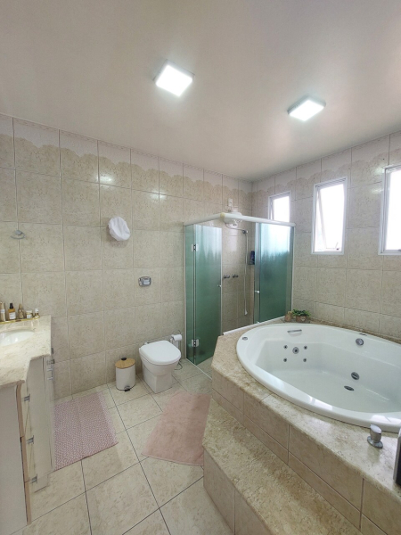 Piso superior: 1 suíte com banheira de hidromassagem, 02 dormitórios, 01 cômodo extra podendo ser utilizado como quarto ou outros fins, banheiro.