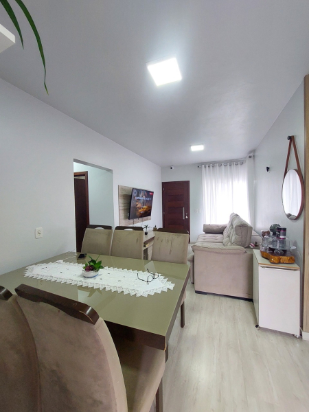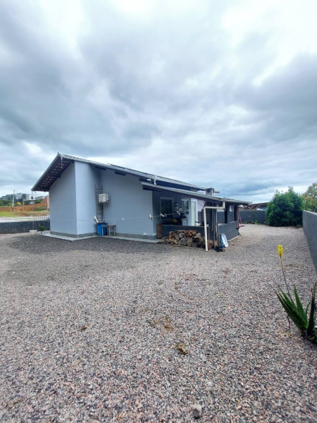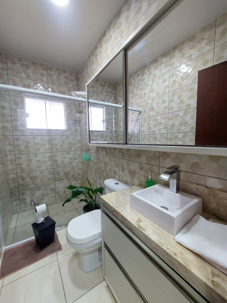 Cozinha integrada com sala de jantar e estar, 02 banheiros, banheiro social, lavação, garagem, churrasqueira.