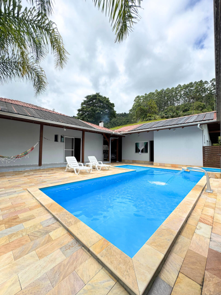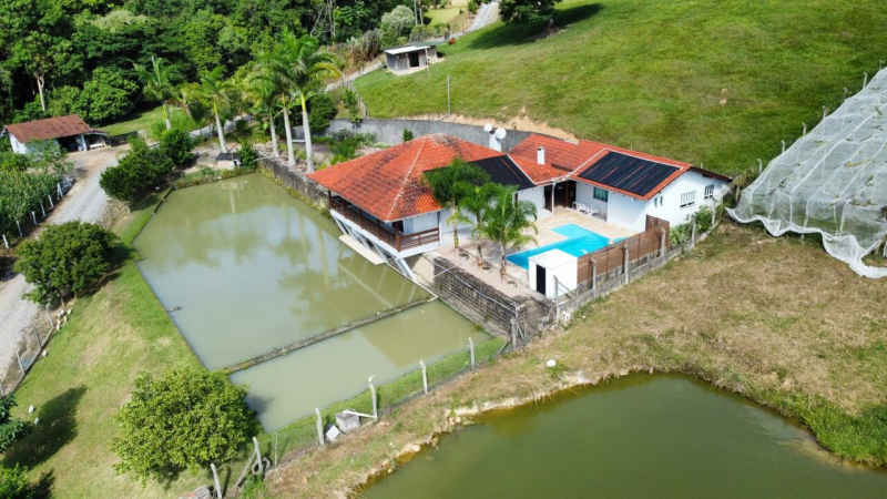 Possui 5.000,00m² e uma linda residência em alvenaria onde possui 02 dormitórios, 02 banheiros, cozinha com fogão a lenha, área de festa com churrasqueira, área externa com piscina aquecida, ôfuro com hidromassagem, cascata e prainha, depósito, lavação. Possui ainda 02 lagoas, galinheiro, e um amplo terreno para plantio.
