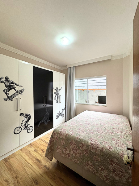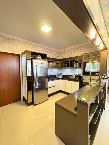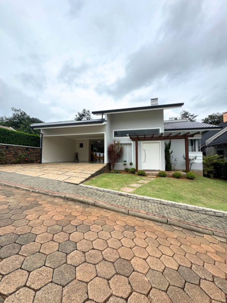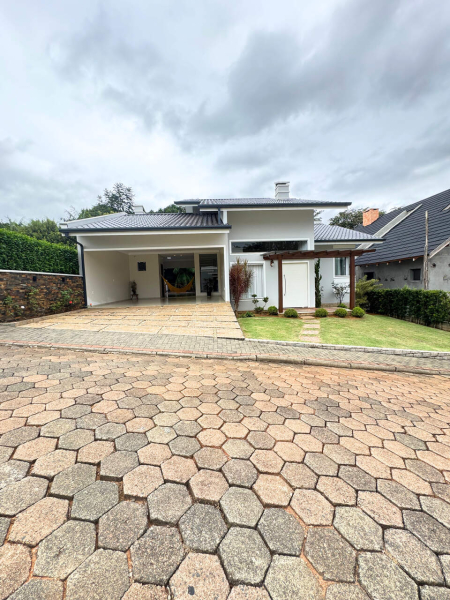 Terreno com área total de 533,89m² e área construída de 175,77m² que dispõe de 01 suíte com closet e varanda, 02 dormitórios, banheiro social, sala de estar com pé direito alto, sala de jantar integrada com cozinha, lavanderia, área de festa com churrasqueira, fogão à lenha, lavabo, 02 vagas de garagem, deck de madeira. Mezzanino para home office, 01 quarto.